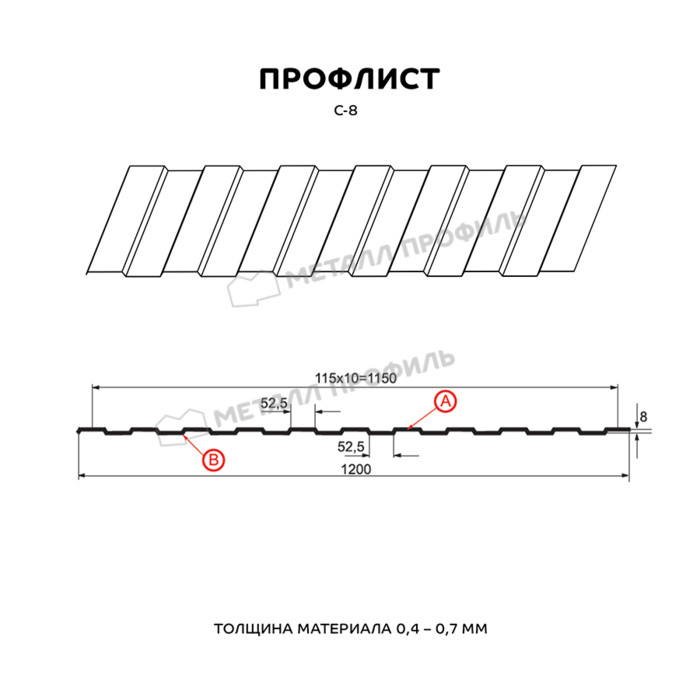 Профлист Металл Профиль С-8 0,5 NormanMP RAL 8004 Коричневая медь | A